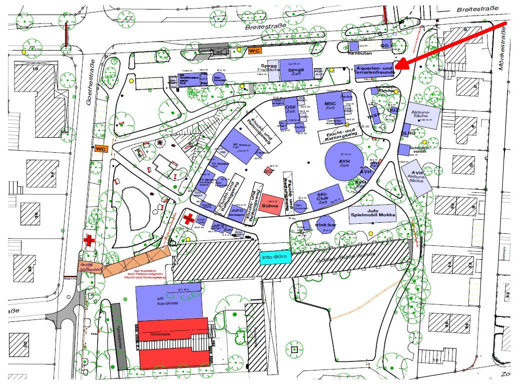 Wir hatten im Gegensatz zu den vorigen Stadtfesten einen wesentlich besseren Stellplatz erhalten (siehe Lageplan unten):